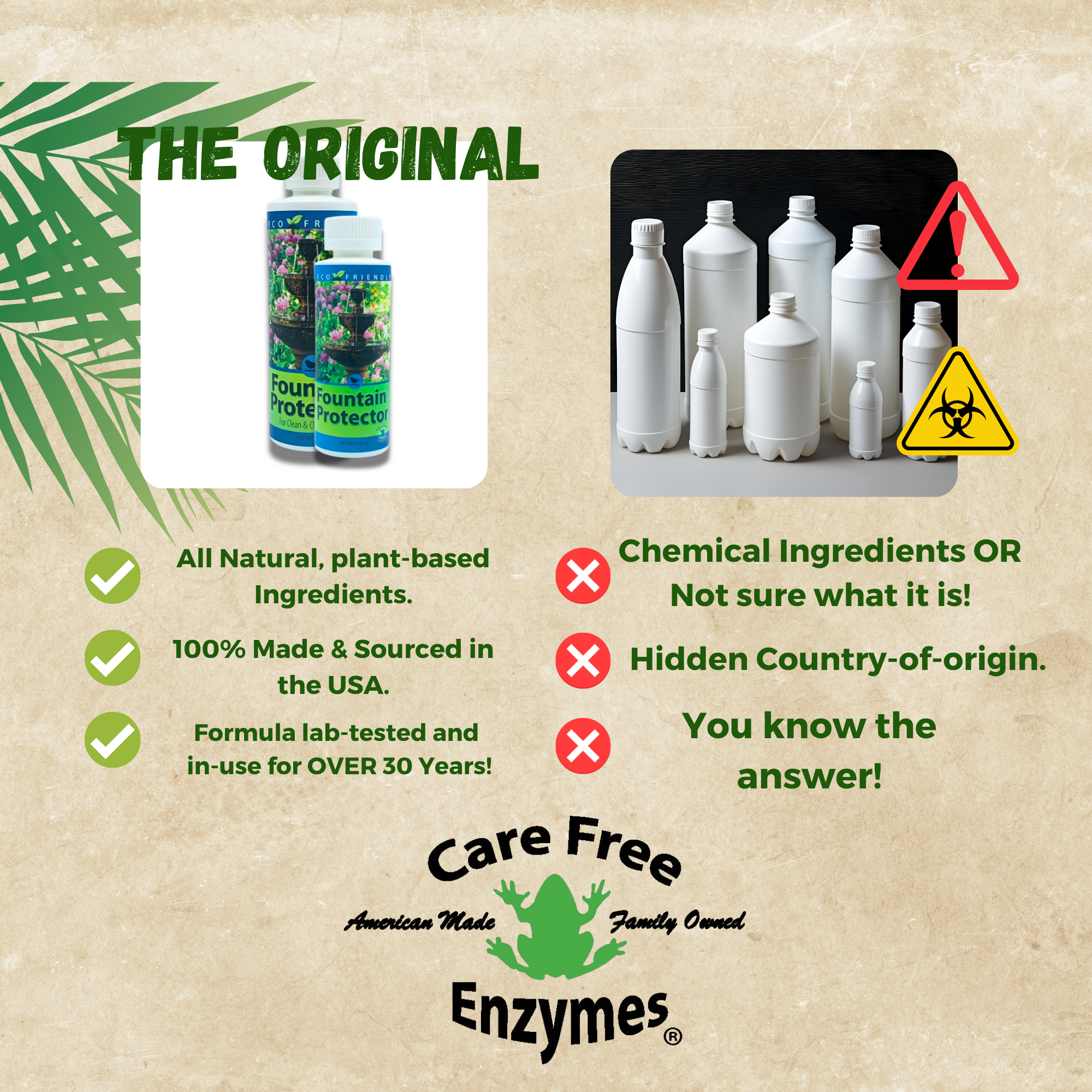 Keep your outdoor and indoor fountains beautiful and running smoothly with CareFree Enzymes Fountain Protector. This all-natural, concentrated formula is the ultimate maintenance solution, safely preventing the stains, slime, and scale that can plague decorative water features.