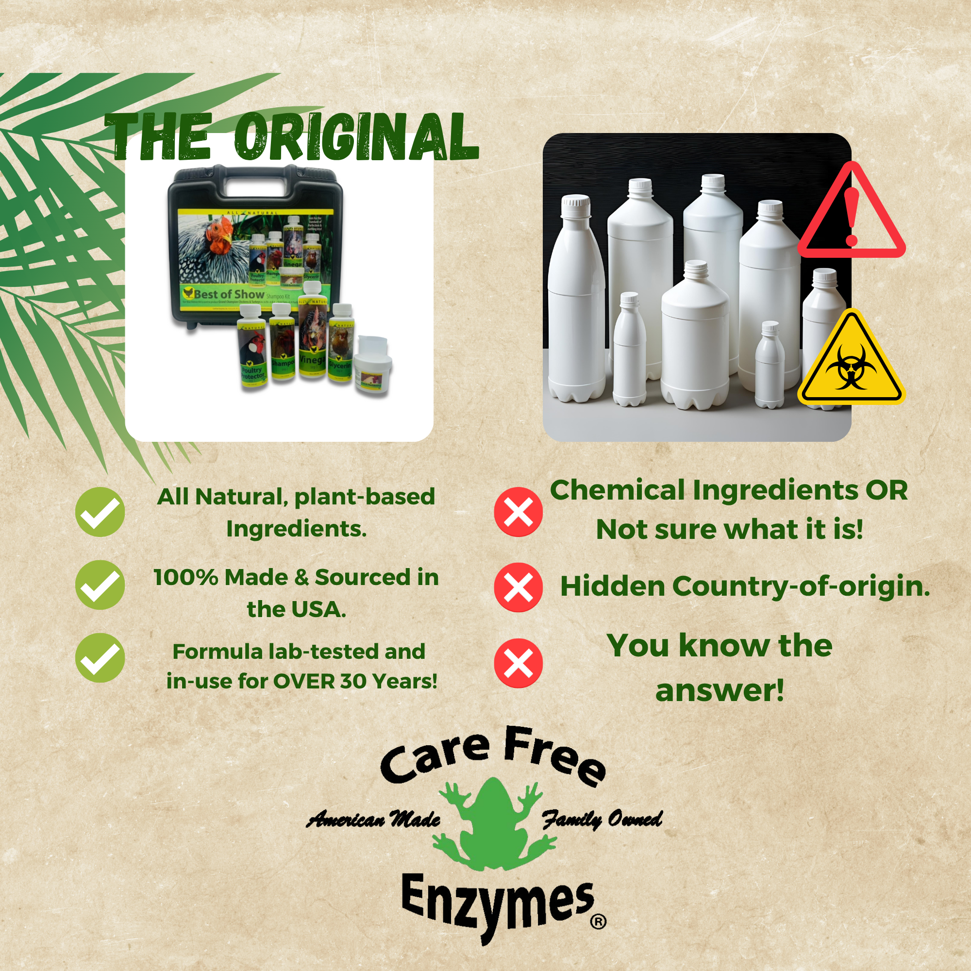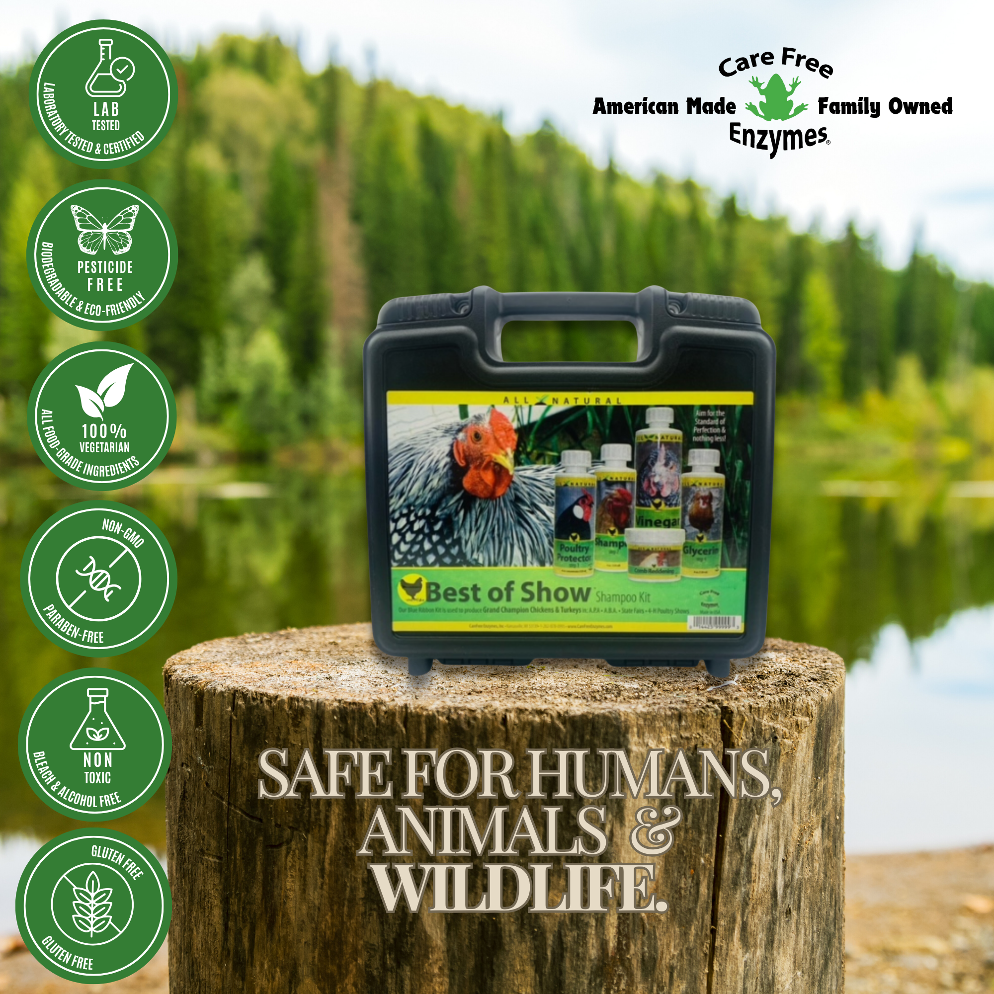 Get your birds ready for the judge's table with the all-in-one CareFree Enzymes Best of Show Kit. This comprehensive grooming kit contains everything a poultry exhibitor needs to condition, clean, and add the perfect finishing touches to their show chickens, ensuring they look their absolute best.