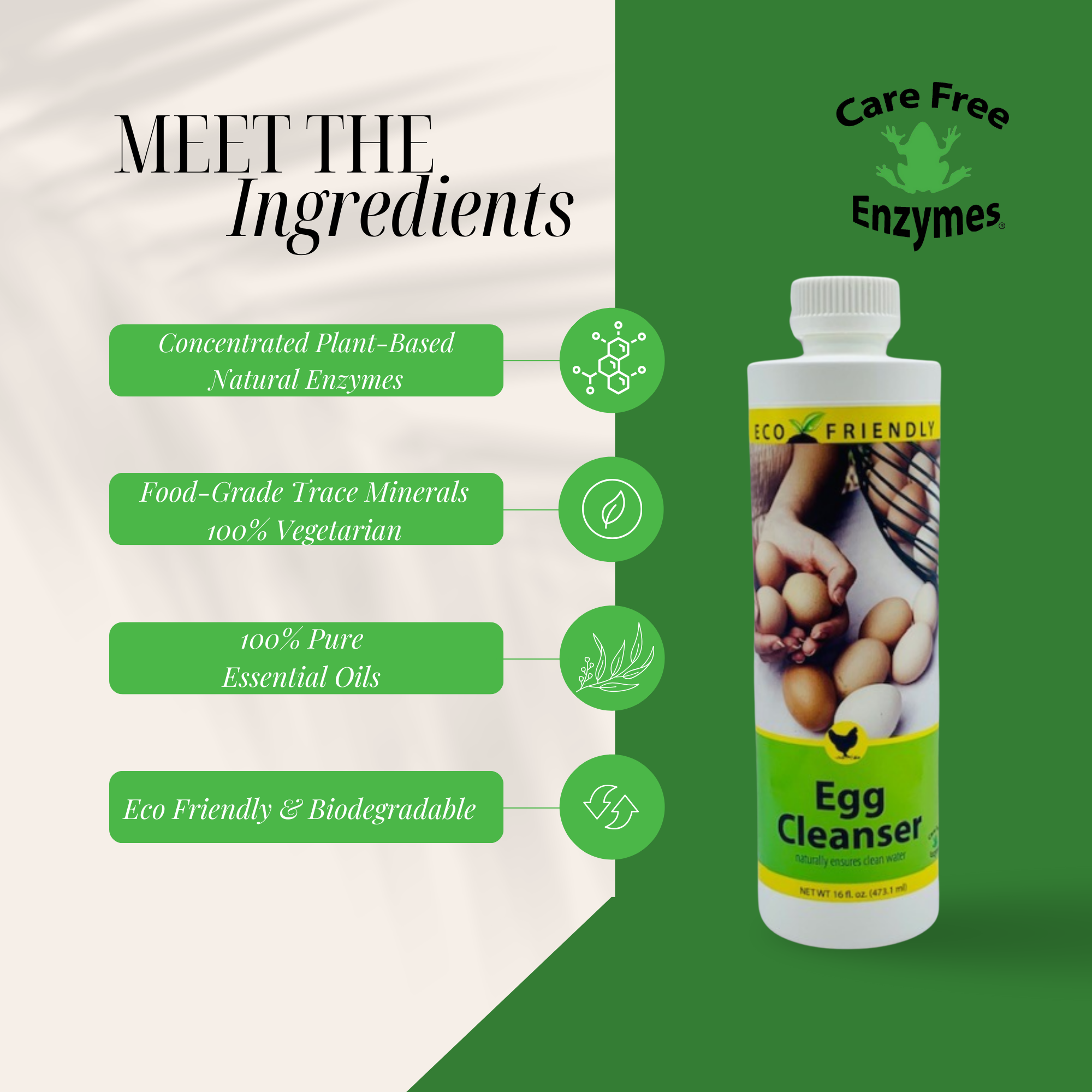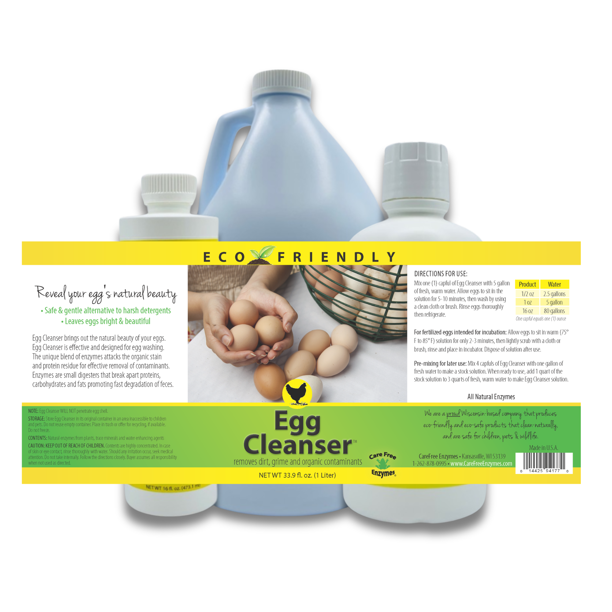 Get beautiful, clean eggs every time with CareFree Enzymes Egg Cleanser. This all-natural, enzyme-based wash is designed to safely and effectively remove dirt, manure, and other contaminants from the surface of your eggs without damaging the delicate bloom or shell.
