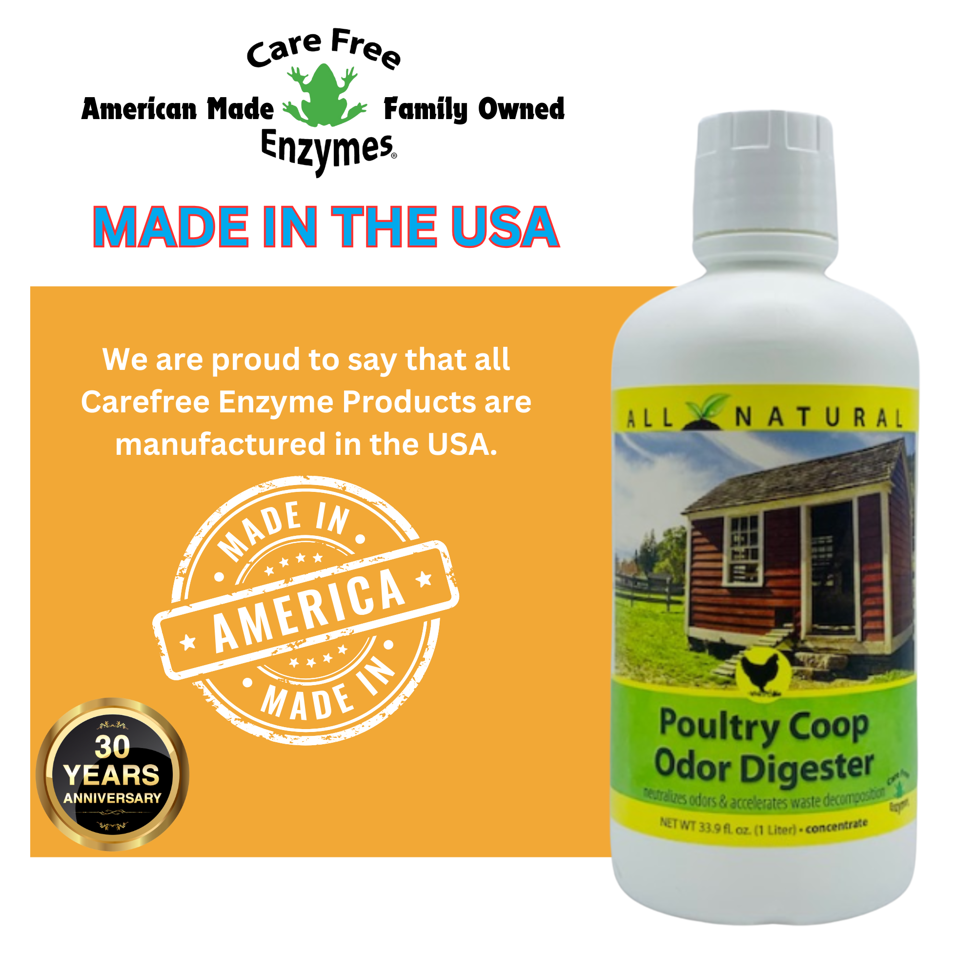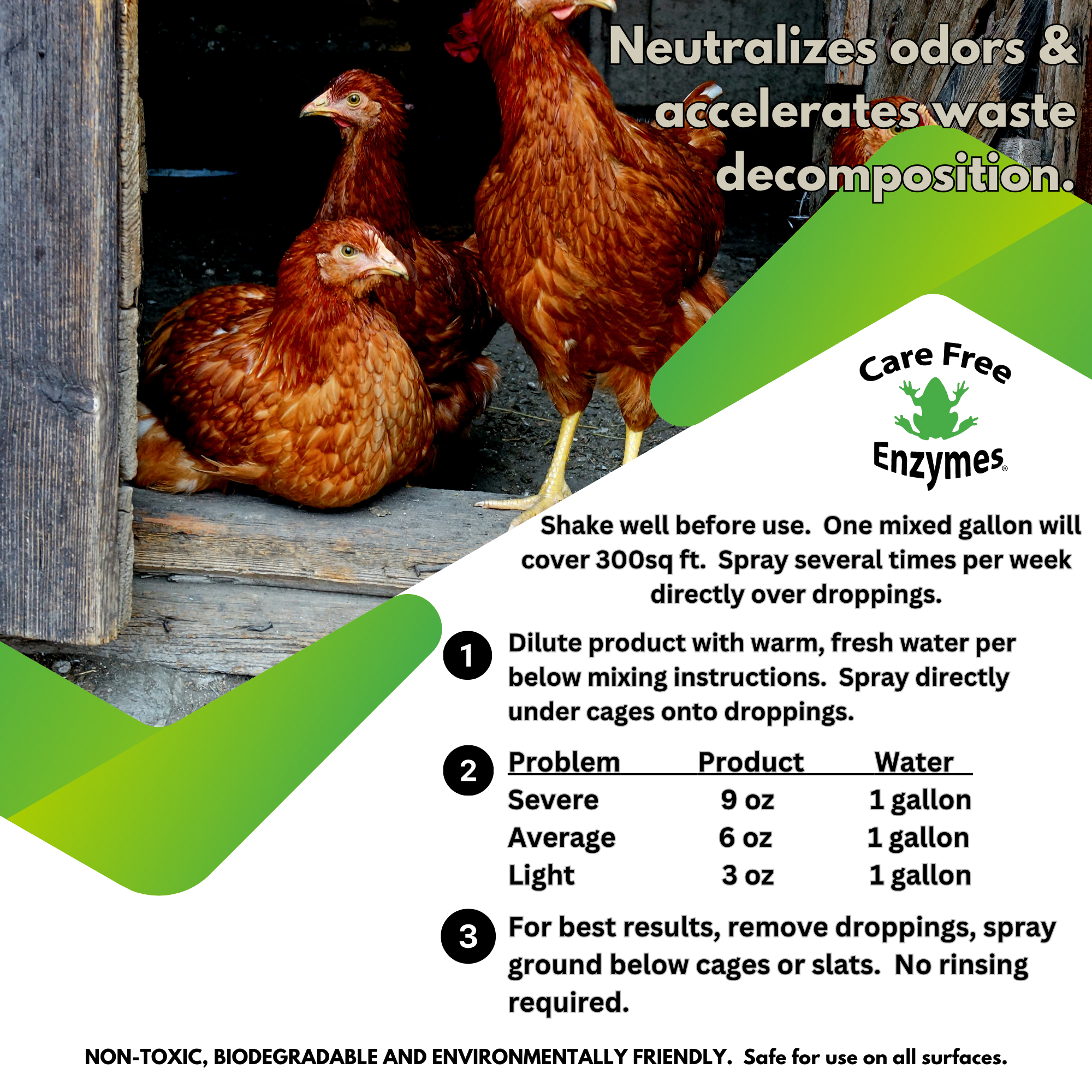 Eliminate powerful coop odors at the source with CareFree Enzymes Poultry Coop Odor Digester. This all-natural, concentrated formula is specifically designed to target and digest the organic waste that causes harmful ammonia and foul smells, creating a healthier, more pleasant environment for your flock.