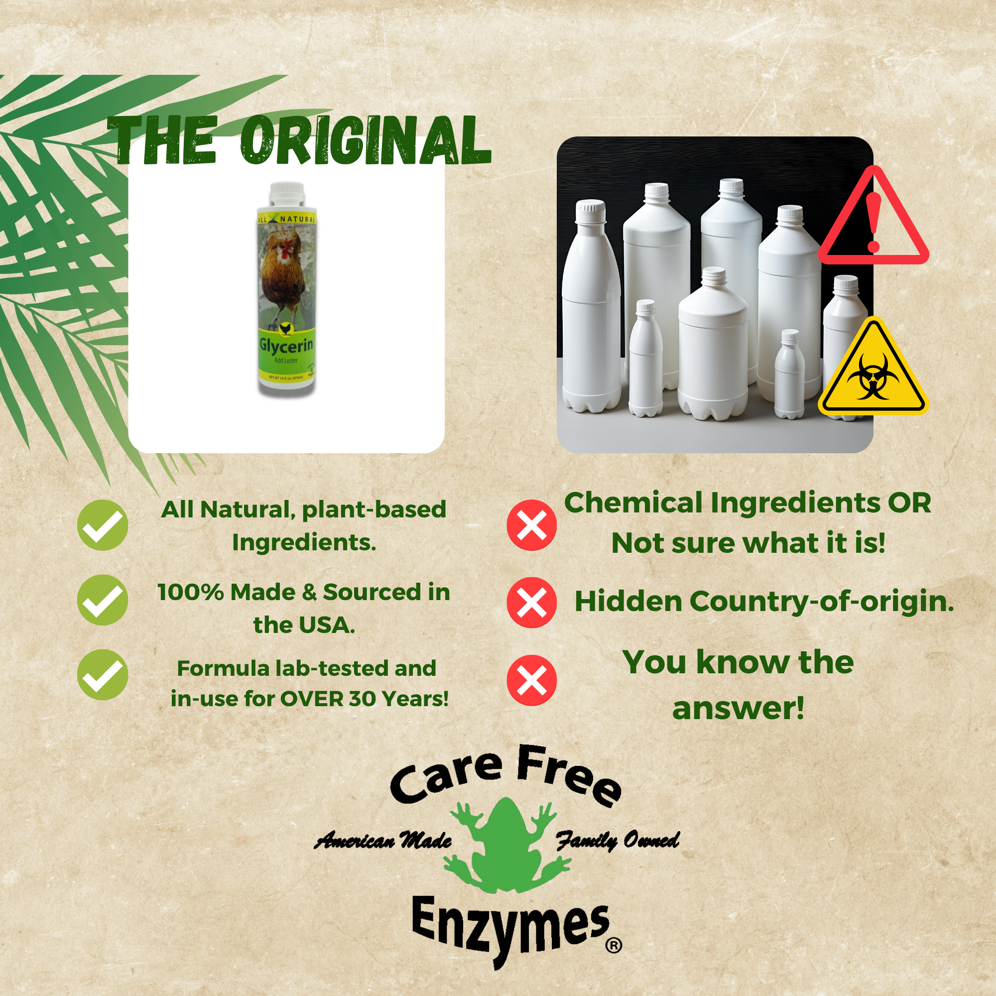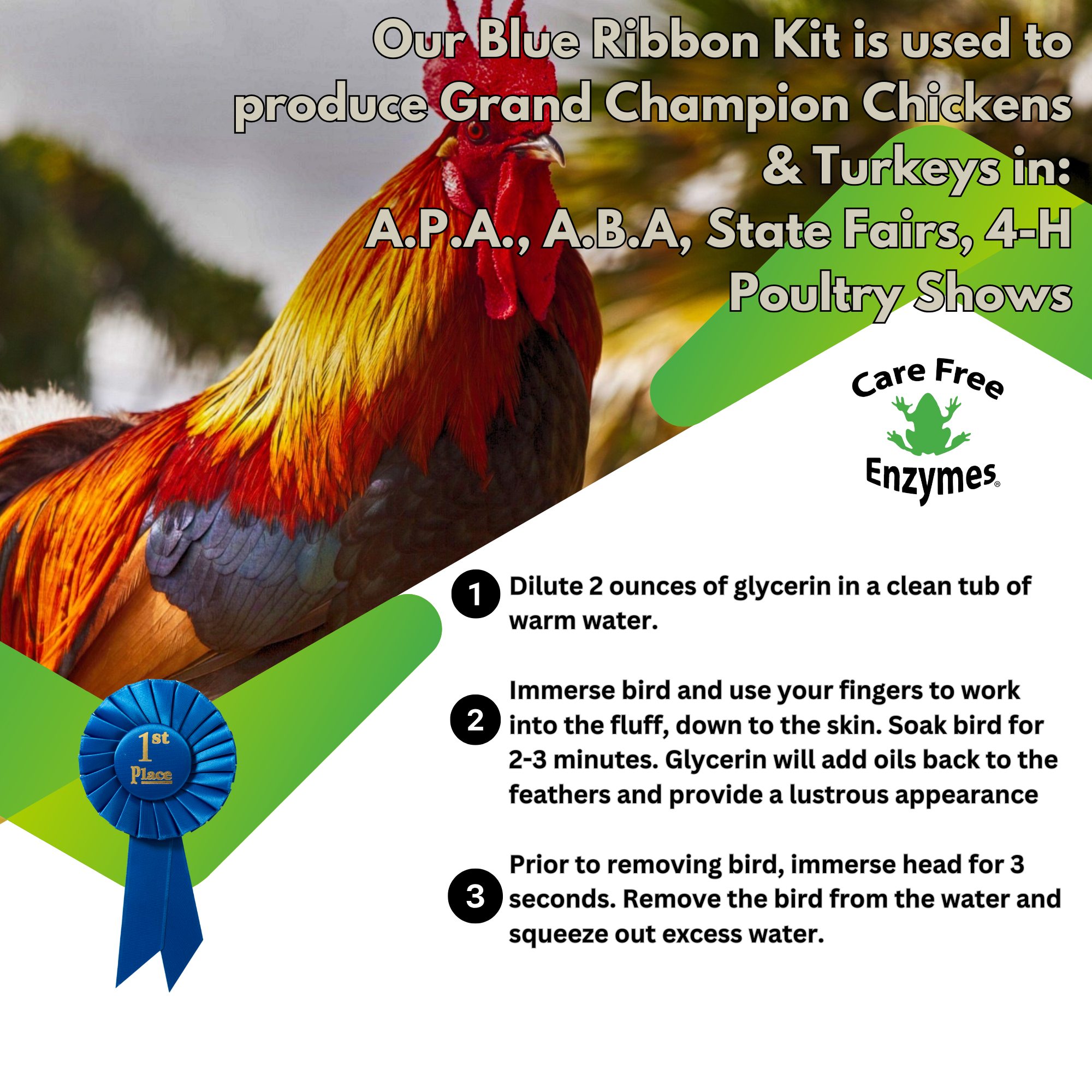 ✅ Adds a Healthy Sheen: When applied to the comb, wattles, and legs, glycerin provides a natural, healthy-looking luster without appearing greasy or artificial.