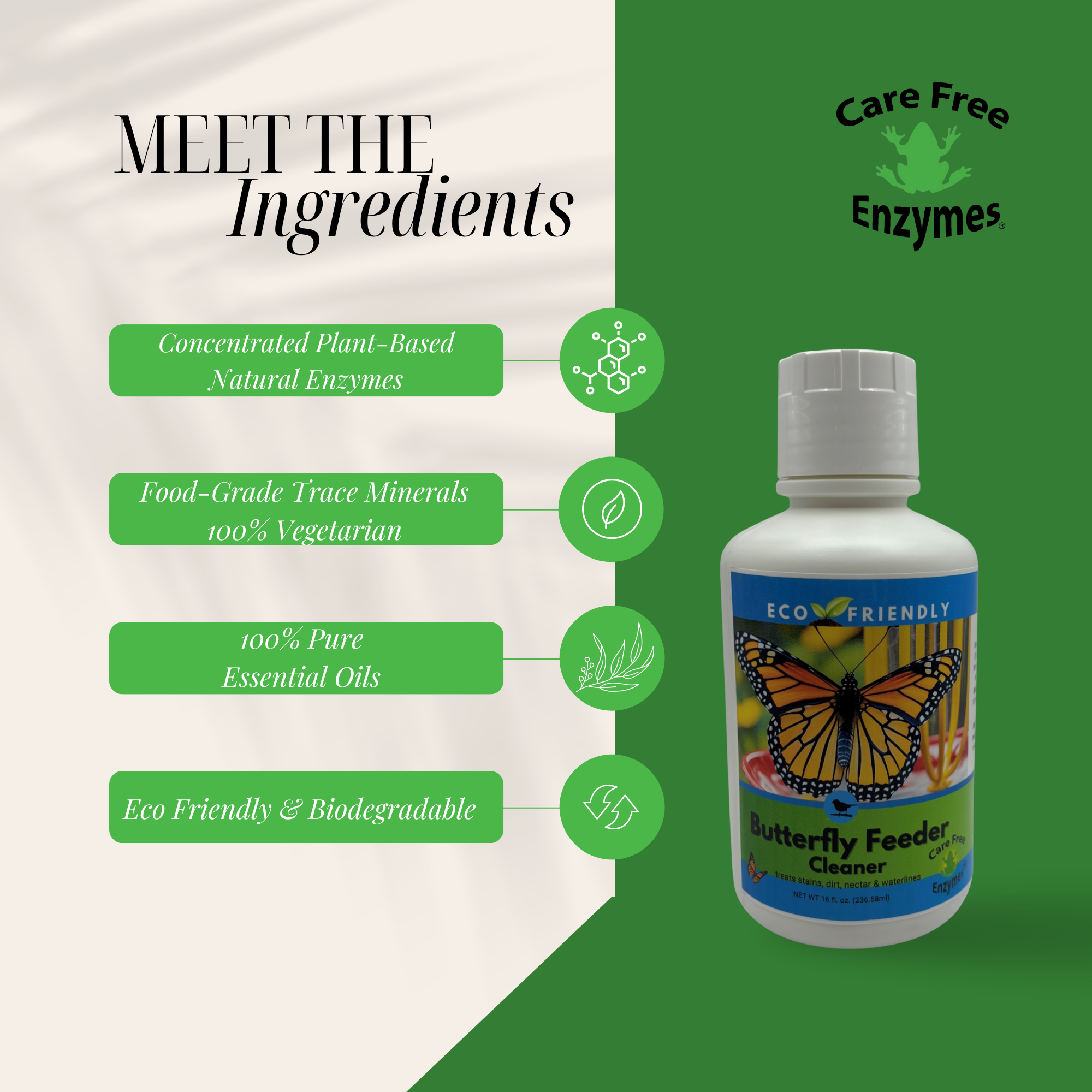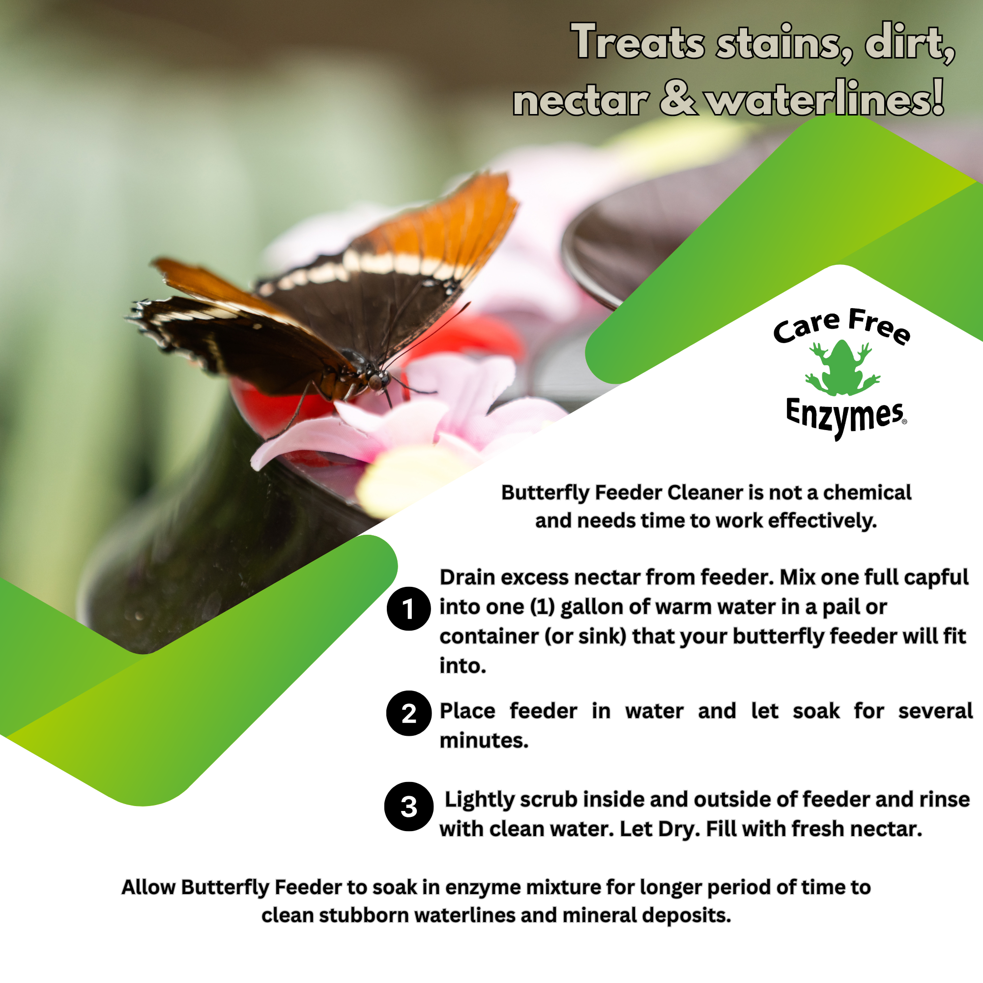 ✅ Safe for Butterflies & Pollinators: Contains no harsh chemicals or detergents. It rinses completely clean, leaving no residue that could be harmful to butterflies, bees, or other beneficial insects.