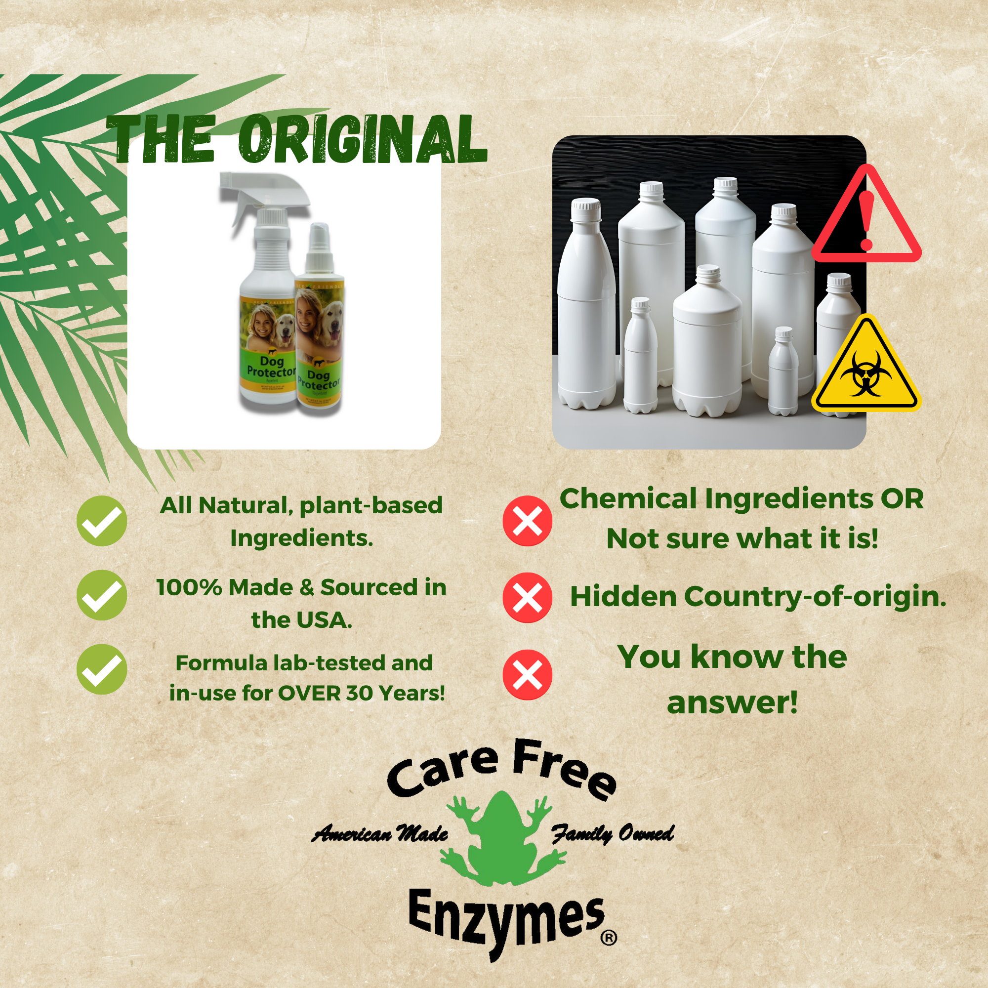 rotect your dog from painful stings with CareFree Enzymes Dog Protector Repellent. This unique, all-natural formula is specifically designed to deter bees, wasps, and other stinging insects, making it an essential safety tool for hikes, camping, and backyard playtime.