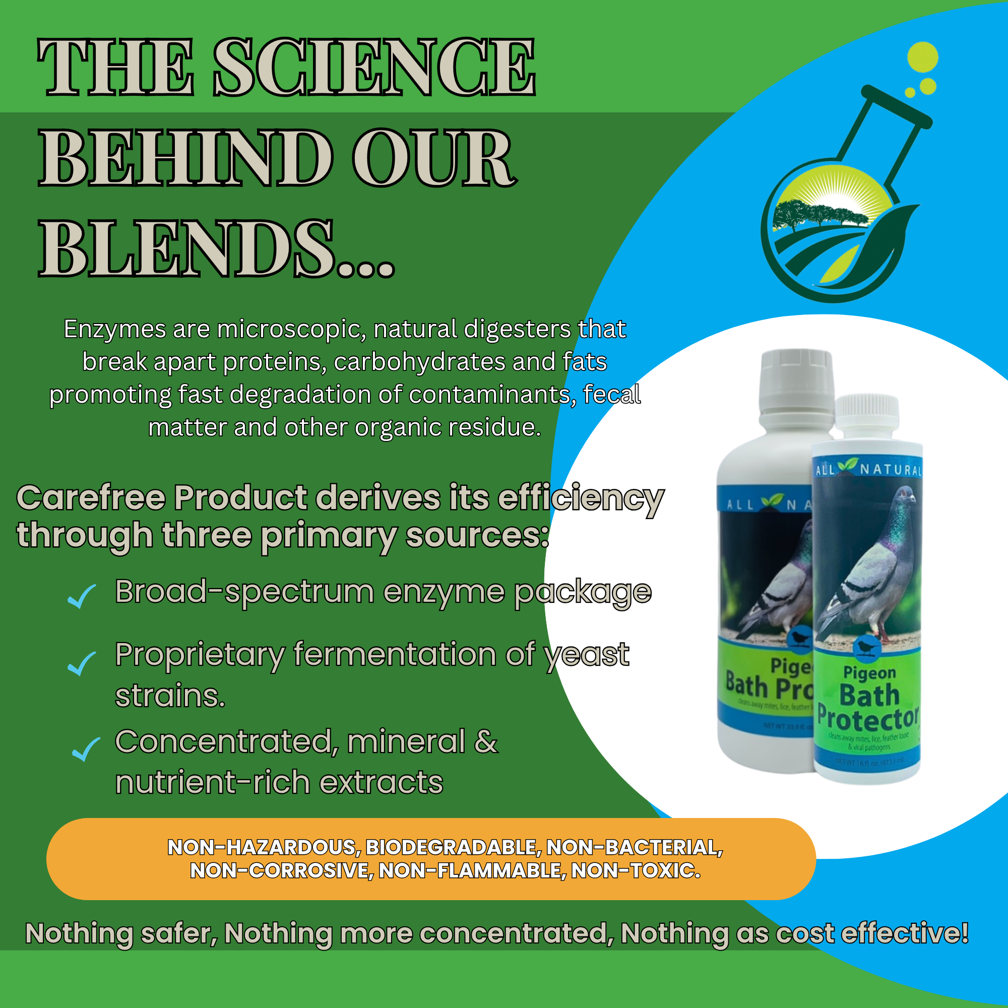 Promote superior feather quality and overall health in your flock with CareFree Enzymes Pigeon Bath Protector. This all-natural, enzyme-based bath water additive is an essential tool for pigeon fanciers, conditioning feathers and creating a healthier bathing environment.