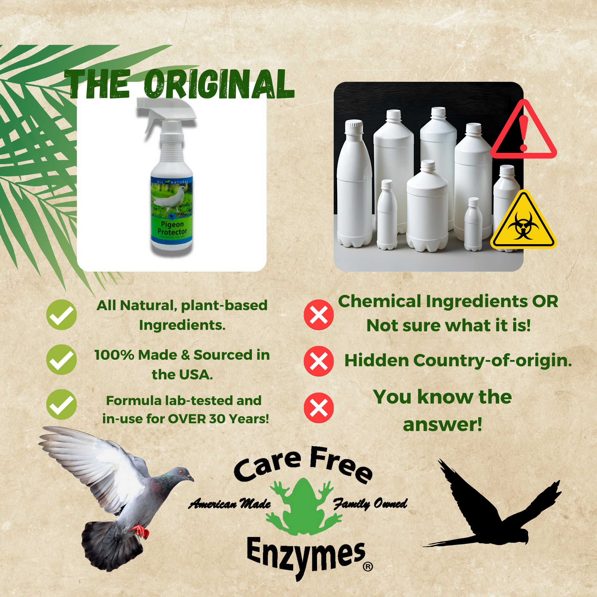 Protect your flock from the stress and harm of external parasites with CareFree Enzymes Pigeon Protector. This all-natural, non-toxic enzyme spray is designed to safely combat mites, lice, and other common parasites on your pigeons and throughout the loft.