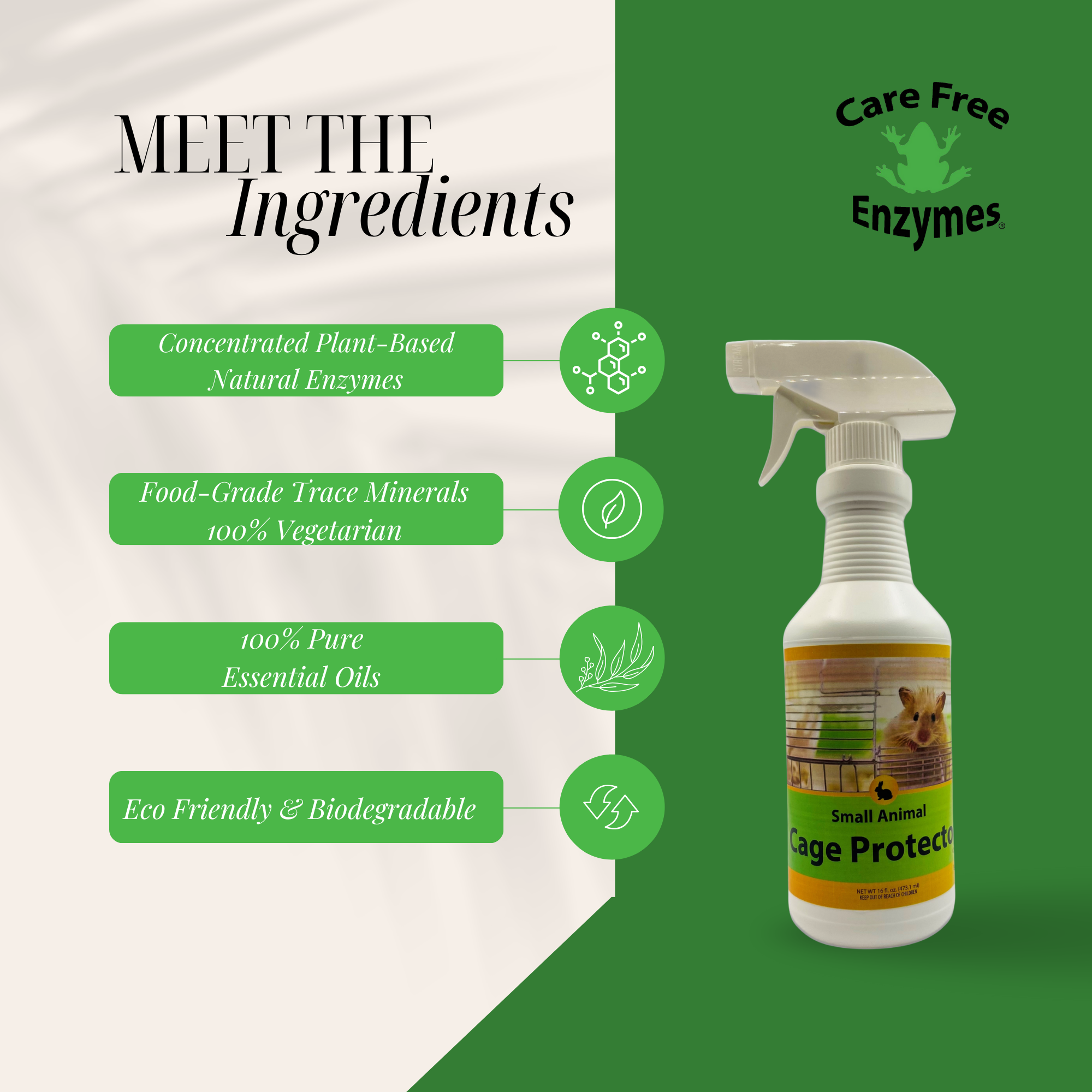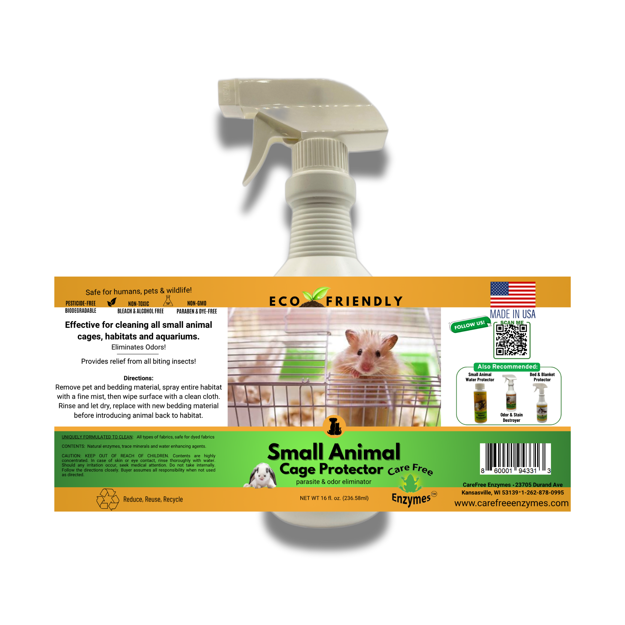 Create a cleaner, healthier, and odor-free home for your small pets with CareFree Enzymes Small Animal Cage Protector. This all-natural, enzyme-based spray is designed to clean and deodorize cages, hutches, and habitats for a wide variety of small animals.