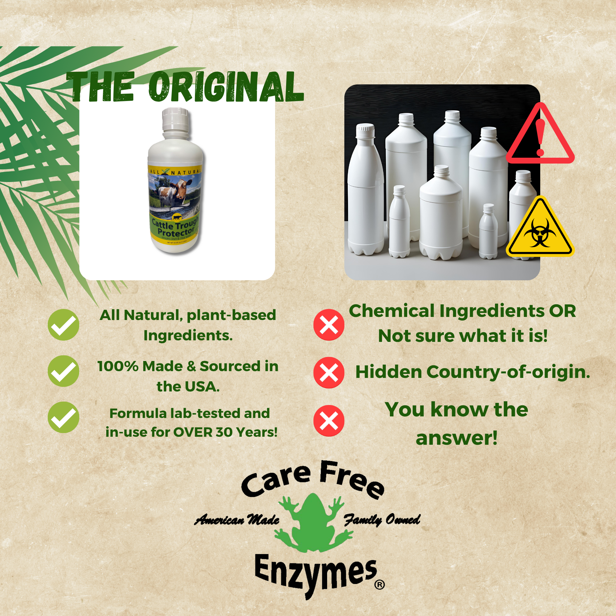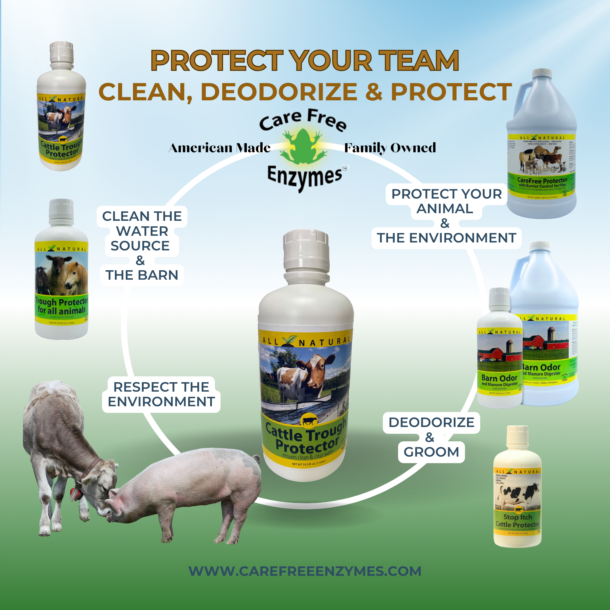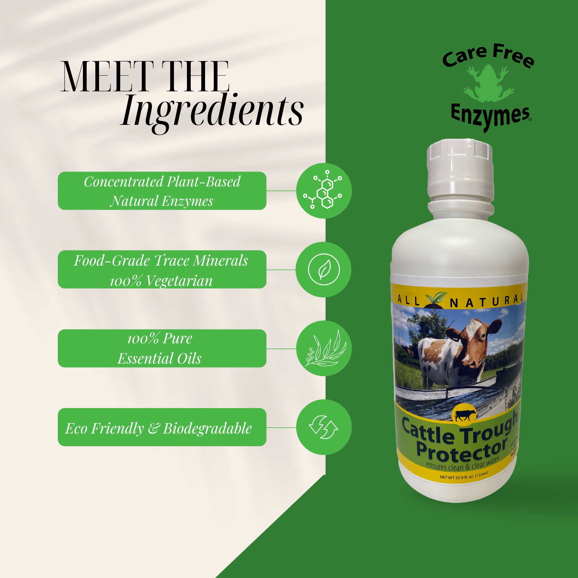 Ensure your herd has constant access to clean, fresh water with CareFree Enzymes Cattle Trough Protector. This concentrated, all-natural water treatment is the most efficient way to prevent the slime and algae buildup that contaminates stock tanks, saving you time and labor.